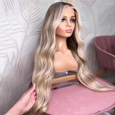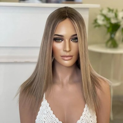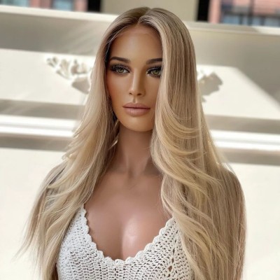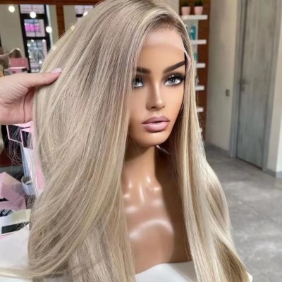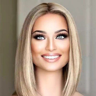 Blonde lace front wig 100% Human Hair WigHighlights Straight style.