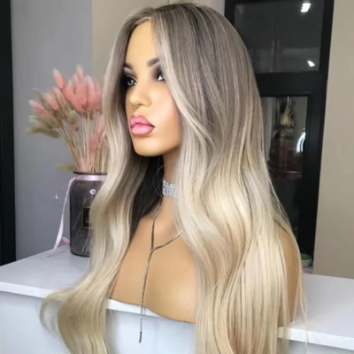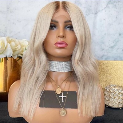 Lace Front Wig Grey-gold gradient human hair wig.100% remy hair