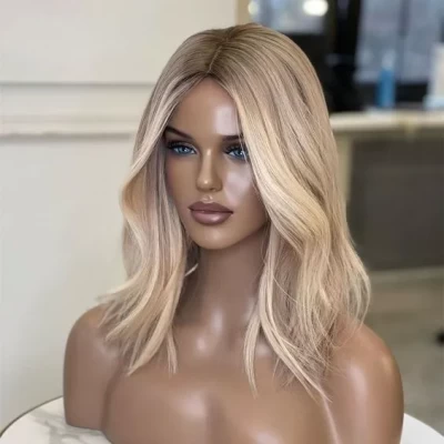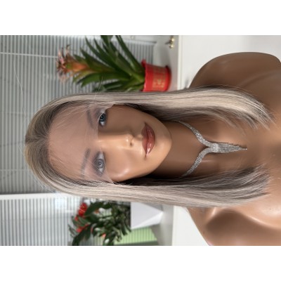 Hayley-Ombre Ash Blonde Lace Top Wig With Ash Root Glueless Human Hair Wig