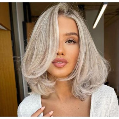 Glueless Wig Soft Remy Human Hair Pretty Ash Blonde Highlight Lace Front Wigs for Women Wholesale Price