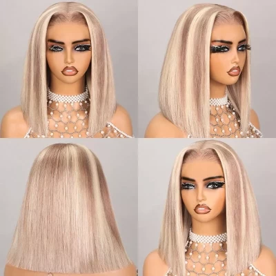 Blonde lace front wig 100% Human Hair WigHighlights Straight style.