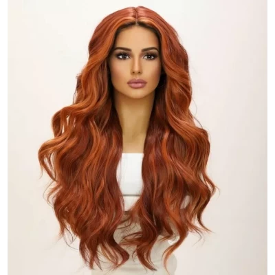 Long Lace Front Wig Auburn Red RedBlonde Human Hair wig,100%remy hair