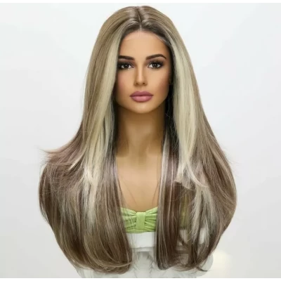 HD Lace Front Wig Ash Brown Blonde Long Layers Human Hair Blend Money Peices