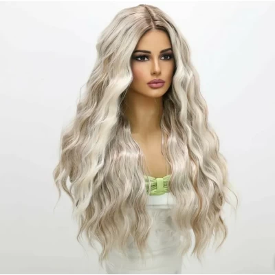 White gole Lace Front Wig Ash Light Blonde Long Wavy Human Hair wig