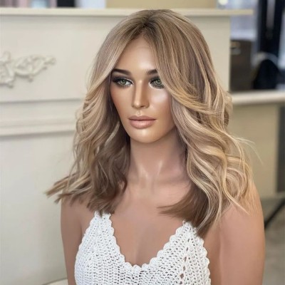 Natural Blended and Rooted Highlight Blonde Wavy Bob 13x4 Lace Wig Human Hair