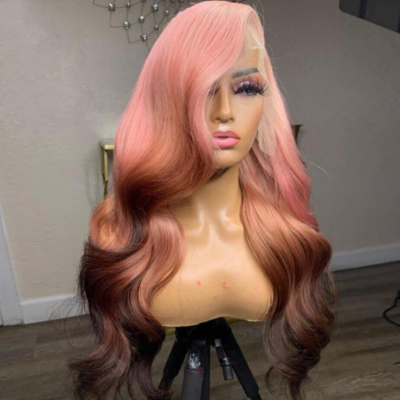 Lace Front Wig Black Gold Gradient human hair wig.100% remy hair