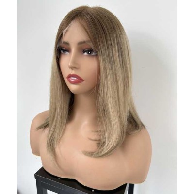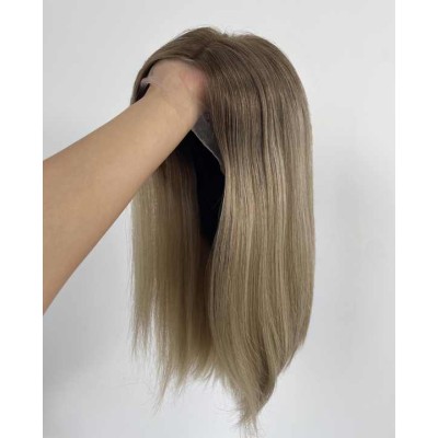 Hayley-Ombre Ash Blonde Lace Top Wig With Ash Root Glueless Human Hair Wig