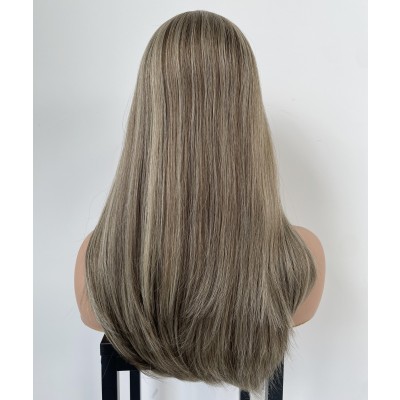 Virgin Cuticle Cut Hair Kosher Wig Highlights Blonde Straight Jewish Wig Topper Kippah Fall
